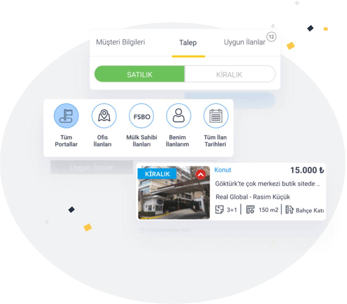 Alıcı Adayı müşterilerinizin taleplerini kaydedin, tüm ilan sitelerindeki uygun ilanlar ile müşteri talebiniz hemen eşleşsin. Revy, alıcı taleplerinize uygun ilanları tüm ilan sitelerinden sizin için sürekli taramaya devam eder, bulur ve size günlük bildirir.