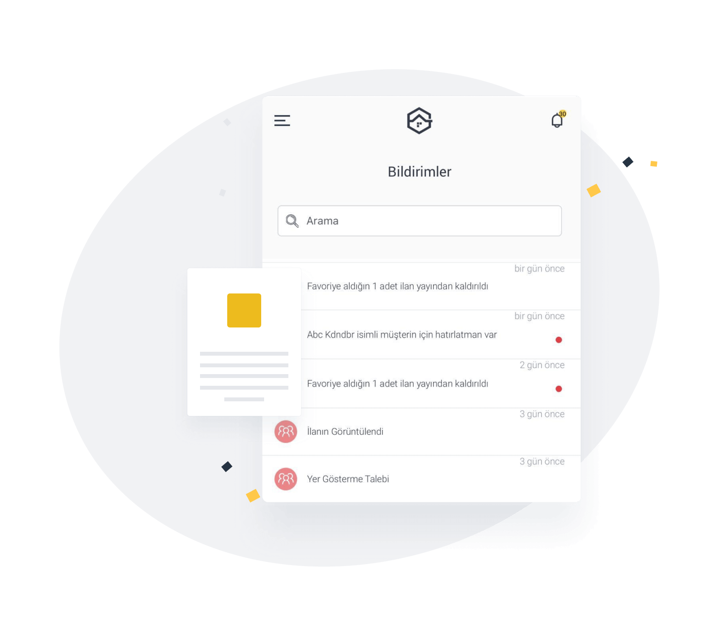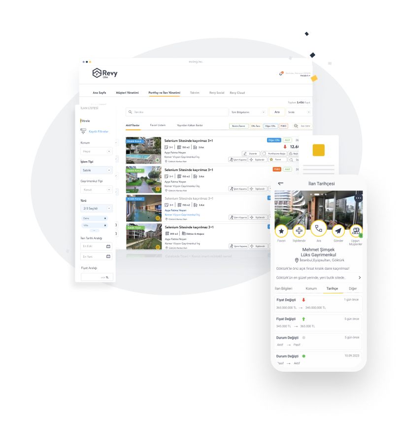 Revy size, bölgenizdeki tüm ilan hareketlerini, müşteriniz ve müşteri talepleriniz ile ilgili hatırlatmaları, Portföyünüzün sözleşme bitiş tarihlerini ve daha onlarca işinizi takip etmenizi kolaylaştıracak bildirimler gönderir, fırsatları yakalamanızı sağlar.